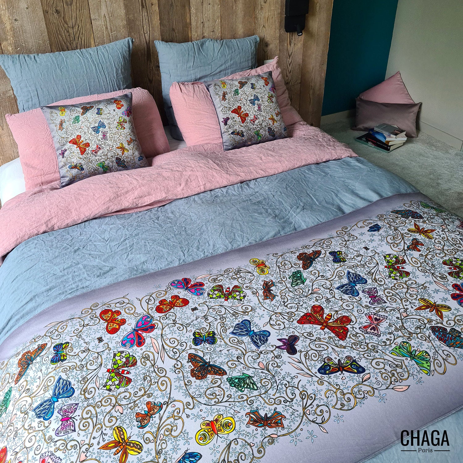 Vous aussi vous pouvez trouver votre bonheur grâce à notre nouveau plaid CHAGALINE d’une extrême douceur. Posé au bord de votre lit, il saura apporter cette touche d’élégance et de fraîcheur en plus à votre espace cocooning.