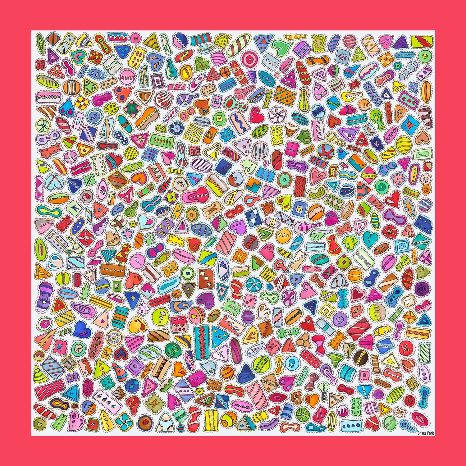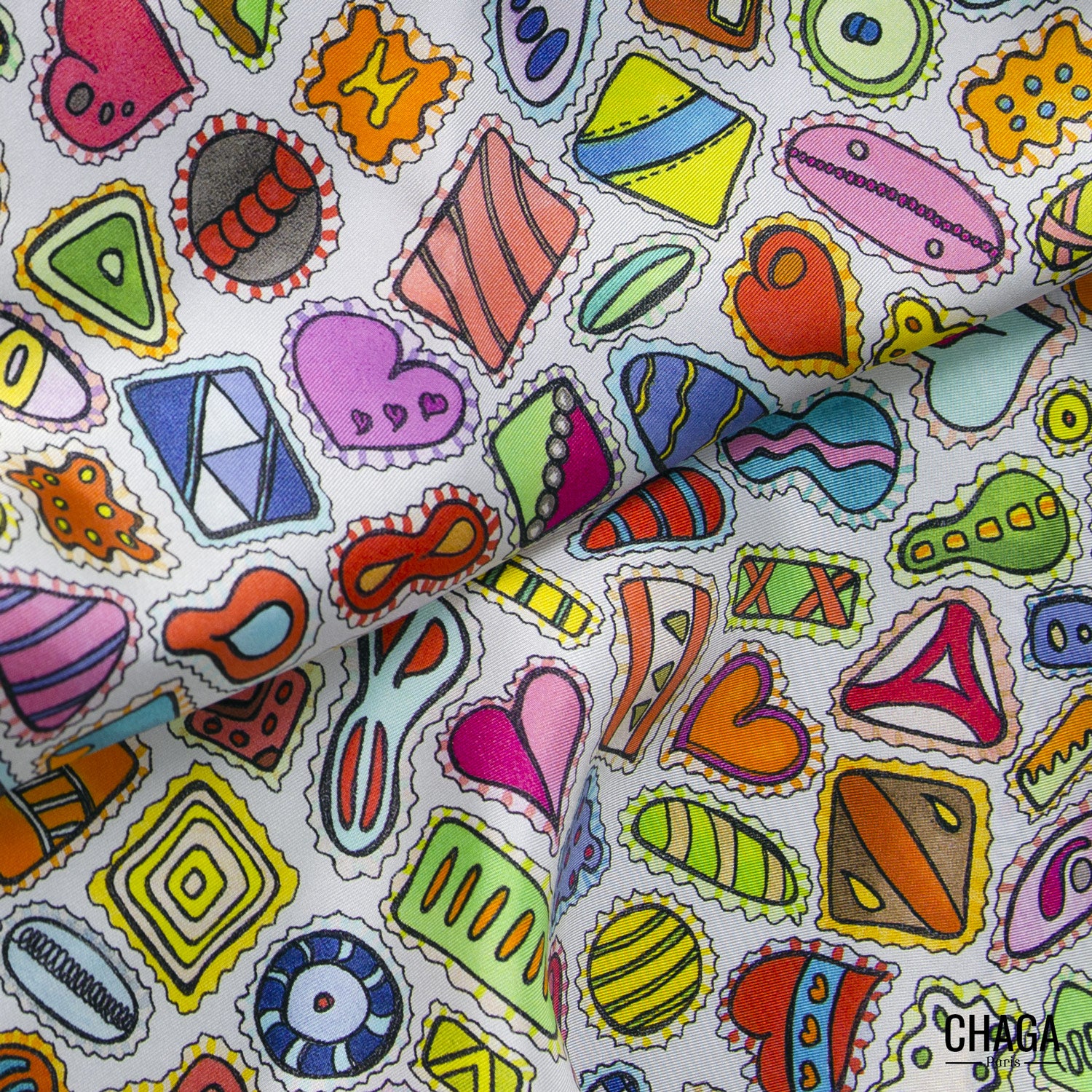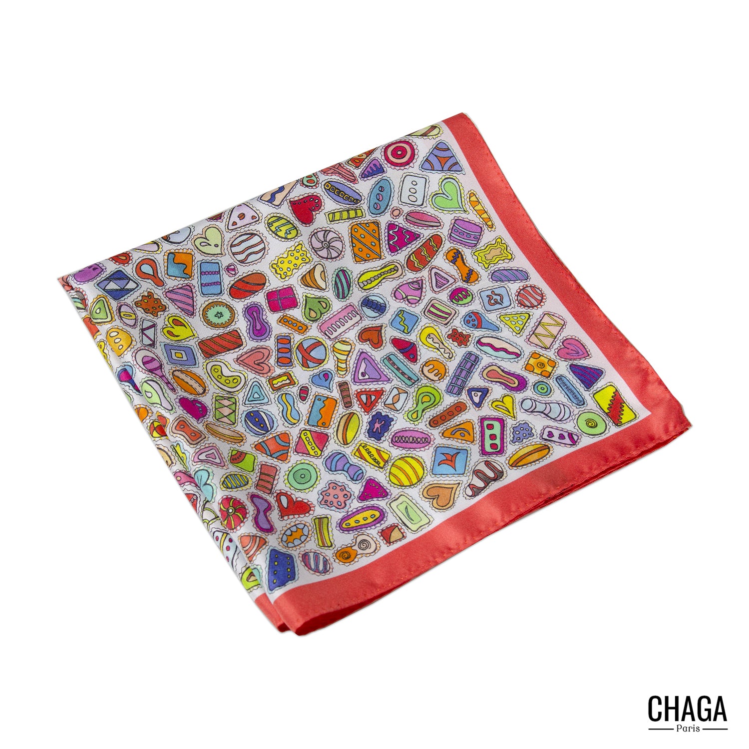 COMPOSITION de la pochette en soie 45cm CHAGA Paris Gourmandises